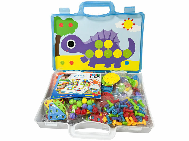 Kreativität entfalten, Motorik fördern: Das Mosaik-Steckspiel lädt Kinder dazu ein, ihrer Fantasie freien Lauf zu lassen und eigene bunte Kunstwerke zu erschaffen. Aus einer Vielzahl an Mosaikteilen entstehen durch einfaches Stecken und Zusammenschrauben tolle Bilder, Figuren und Formen. So kann das Mosaik-Spiel nicht nur dabei helfen, die Motorik zu fördern, sondern auch ein Gespür für Farben und Formen sowie räumliches Denken zu entwickeln.