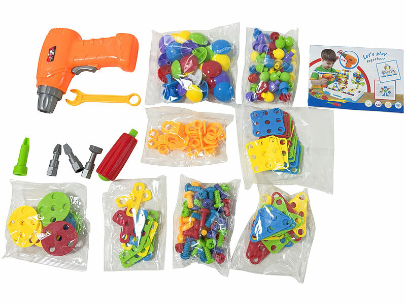MitBohrmaschine: Das Besondere an diesem Steckspiel ist die kindgerechte, batteriebetriebene Bohrmaschine. Mit dieser darf sich Ihr Kind beim Bauen und Konstruieren wie ein echter Handwerker fühlen.