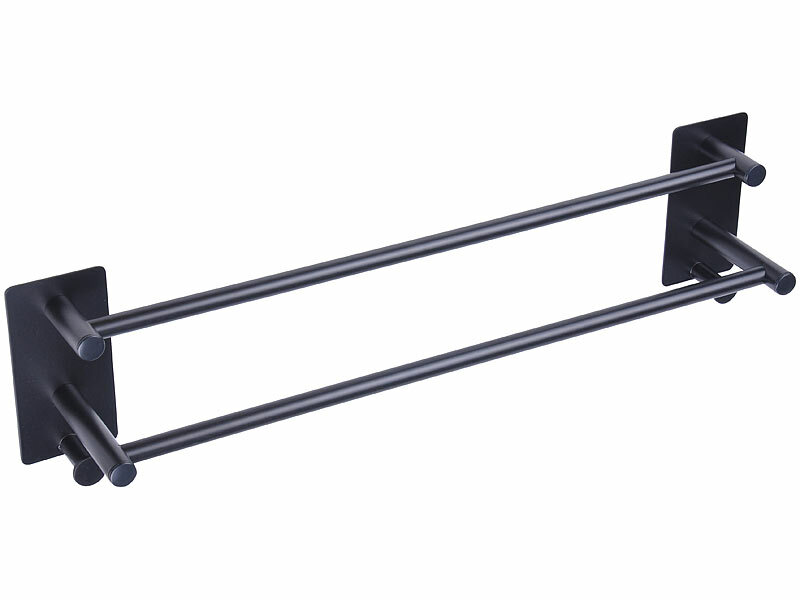 BadeStern Geschirrhandtuchhalter: Edelstahl-Doppel-Handtuchhalter mit 2 Haken, selbstklebend, 67,5 cm