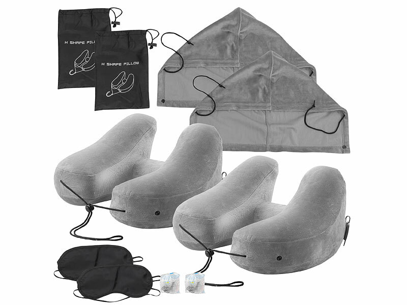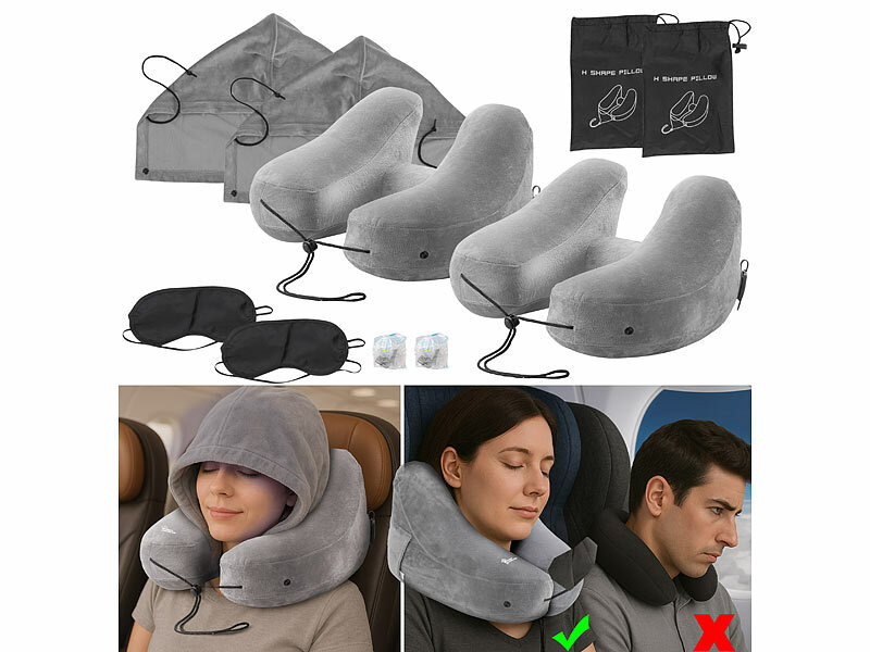 newgen medicals Autos Kissen Nacken: 2er Set Aufblasbares Nackenkissen mit abnehmbarer Kapuze, H Form