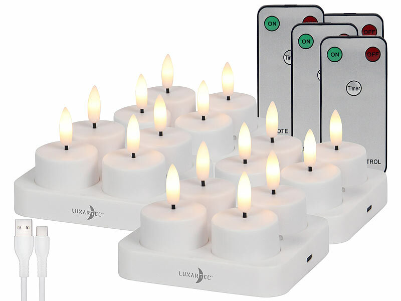 Lunartec 24er-Set Akku-LED-Teelichter mit realistischer Flamme & Fernbedienung