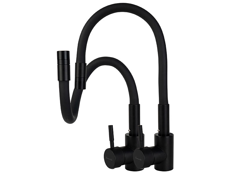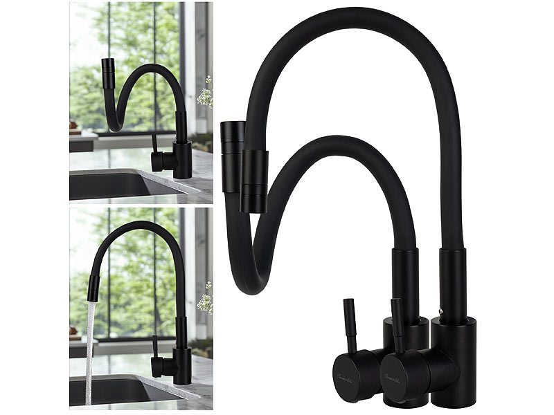 Bequeme Eleganz für Ihre Küche: Die Edelstahl-Küchenarmatur erleichtert Ihnen den Alltag. Der biegsame Silikon-Auslauf hilft Ihnen, mühelos selbst die größten Töpfe und Pfannen zu spülen. Ideal für jede Küchensituation.
