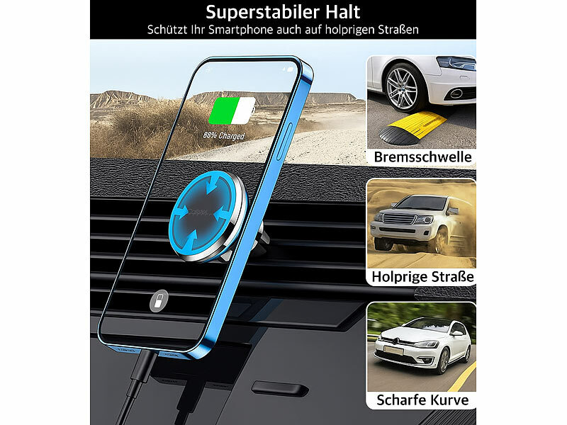 | Produktgruppe: Kfz-Handyhalterungen für Armaturenbretter, MagSafe- & Qi-kompatible für nur € 13,99 | Produktgruppe: Universal Auto-Magnet-Halterungen von € 7,50 bis € 10,99 |