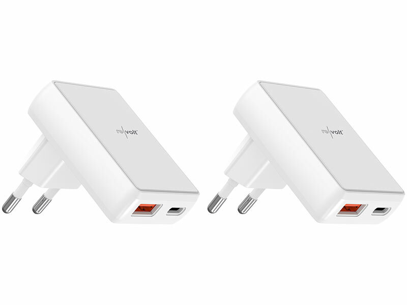 revolt USB Netzteil kompakt: 2er-Set flache USB-Netzteile mit USB-C PD 20W, USB-A Quick Charge 18W
