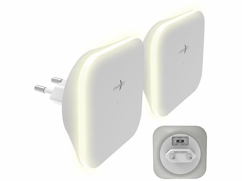 | Produktgruppe: LED-Steckdosen-Nachtlichter mit PIR- und Dämmerungs-Sensoren von € 8,49 bis € 10,99 | Produktgruppe: LED-Steckdosen-Nachtlicht mit Dämmerungssensor von € 6,79 bis € 9,99 |