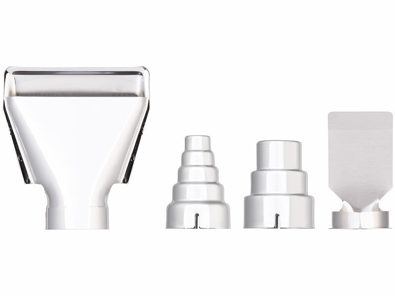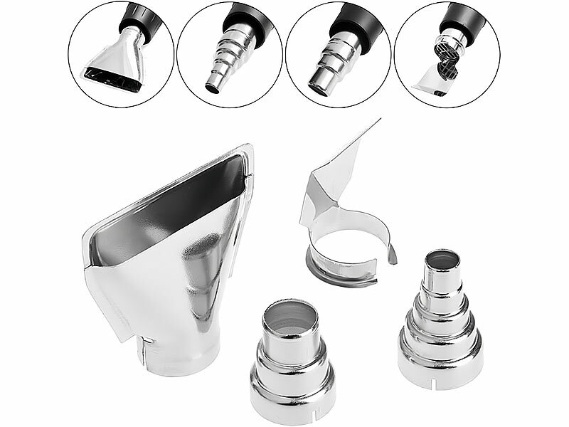 Perfekte Ausstattung mit 4 verschiedenen Aufsätzen für jeden Gebrauch: Mit den 4 beiliegenden Düsen gelingt Ihnen jeder Arbeitsschritt - vom punktgenauen Erhitzen bis zur großflächigen Luftverteilung. Die Aufsätze lassen sich bequem wechseln und erweitern Ihre Möglichkeiten bei jedem Projekt.