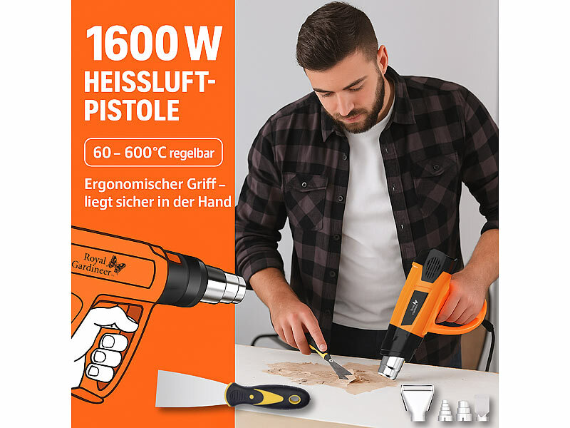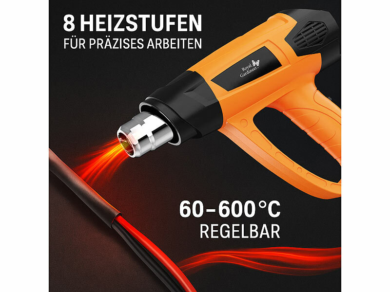 Royal Gardineer Heißluftföhn: Heißluftpistolen-Kit, Temperaturregelung 60 - 600 °C, bis 500 l/Min.