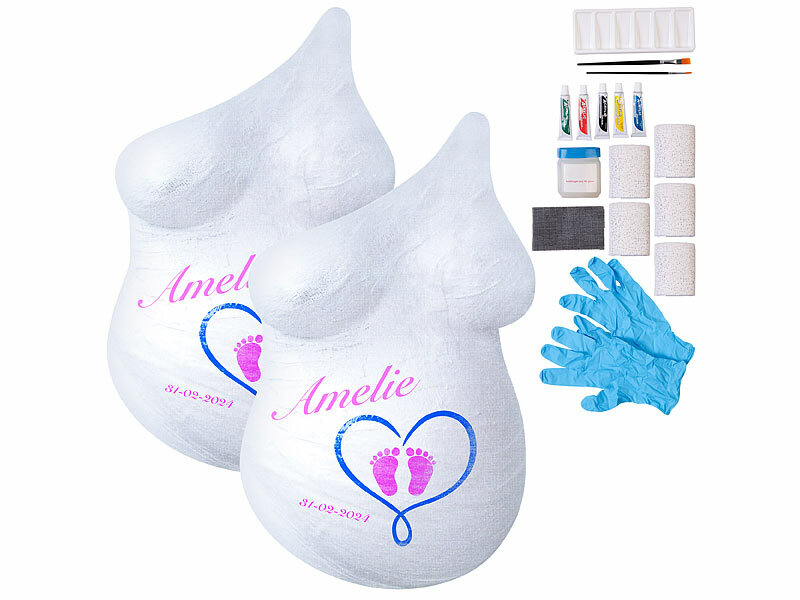 Your Design Gipsabdrücke 3D: 2er-Set Babybauch-Gipsabdruck-Sets mit 5 Acrylfarben und 2 Pinseln