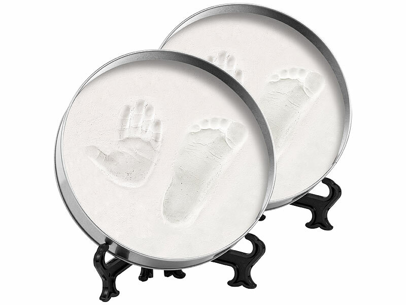 Your Design 3D-Erinnerungen: 2er-Set Gipsabdruck-Sets mit dekorativer Metallbox & Ständer, Ø 16,5cm