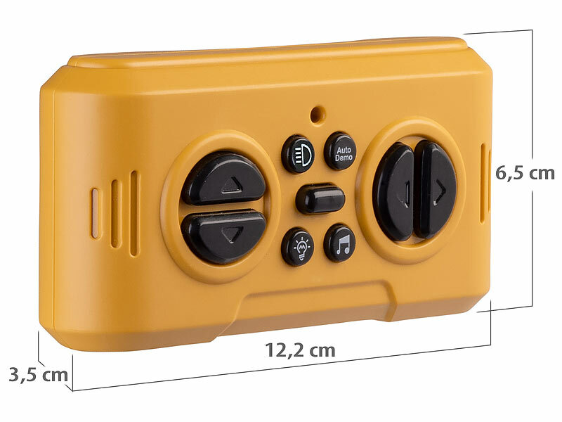 Maße Roboter: 21 x 8,5 x 12 cm, Fernbedienung: 12,2 x 6,5 x 3,5 cm