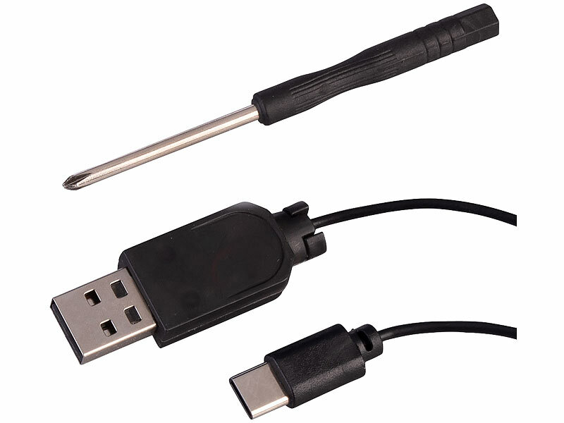 Stromversorgung: Li-Ion-Akku mit 500 mAh für bis zu 25 Minuten Laufzeit, lädt per USB-C (USB-Netzteil bitte dazu bestellen), Fernbedienung: 2 Batterien Typ AAA / Micro (bitte dazu bestellen)
