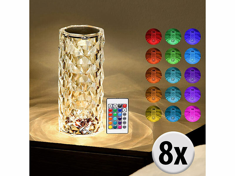 8 LED-Kristall-Nachttischlampen je inklusive Fernbedienung mit Knopfzelle, USB-Ladekabel (USB-C auf USB-A) und deutscher Anleitung - Tischlampe Touch dimmbar - Außerdem relevant oder passend zu: Rose, Farbe, Kerzen, Dimmer, Batterie, Teelichter, Lampen, Kabellose Stehlampe