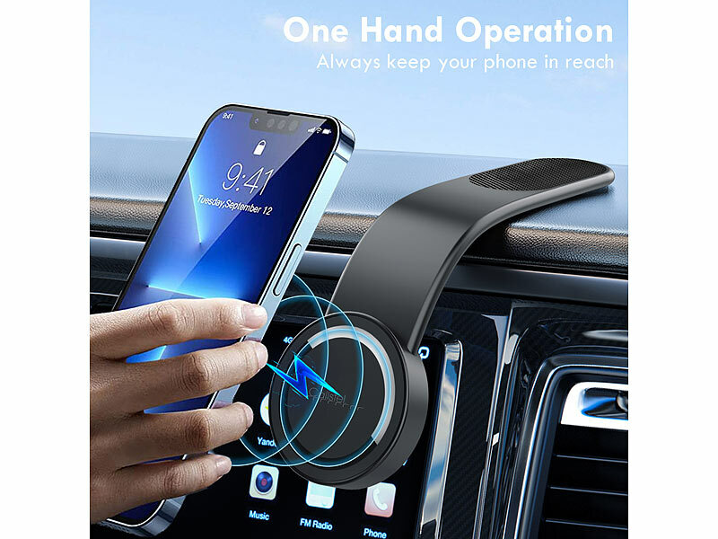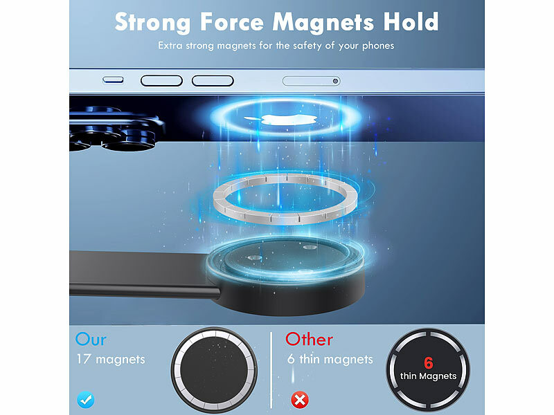 Starker Halt mit MagSafe-Kompatibilität: Die Handyhalterung hält Ihr MagSafe-kompatibles Smartphone magnetisch zuverlässig in Position - ganz ohne Klappmechanismen. Einfach aufsetzen, sofort sicher verbunden.
