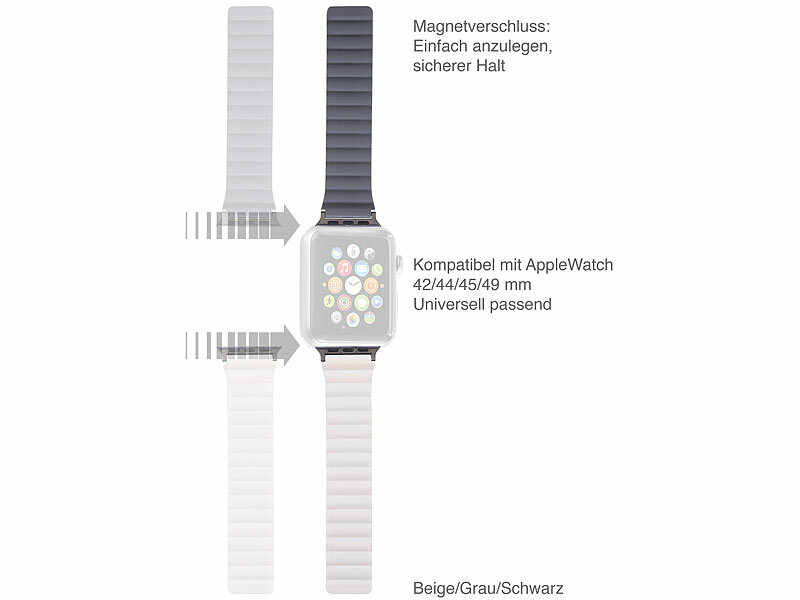 - Armband für Apple Watch, 42/44/45/49mm, beige/grau/silber (NUR € 9,90)