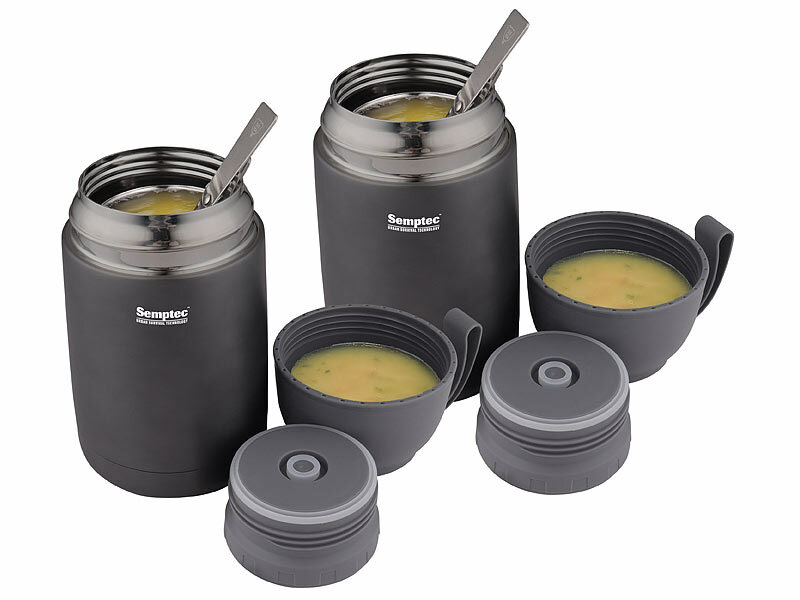 Semptec Lunchbox für Ausflüge: 2er-Set Isolier- & Lunchbehälter, mit Esslöffel, 620 ml, Edelstahl