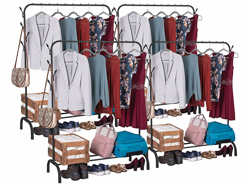 Carlo Milano Bekleidungsgestelle: 4er-Set Freist. Kleiderstange mit 8 Haken, 110 x 146 x 41 cm, schwarz