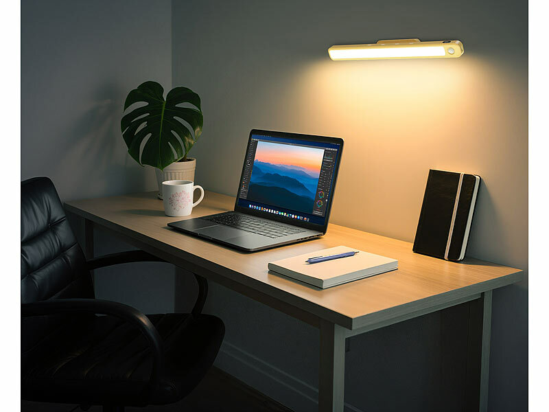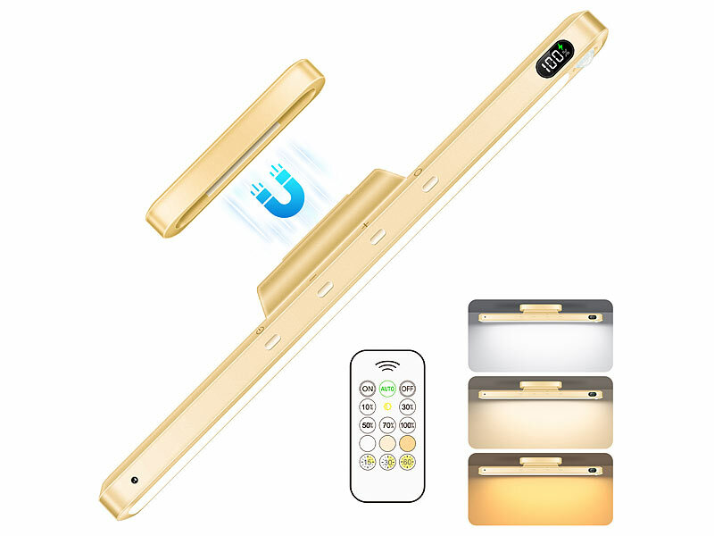 LED-Akku-Unterbauleuchte/Bilderleuchte inklusive USB-Ladekabel (USB-C auf USB-A), 2 Magnethalterungen, Fernbedienung mit Knopfzelle und deutscher Anleitung