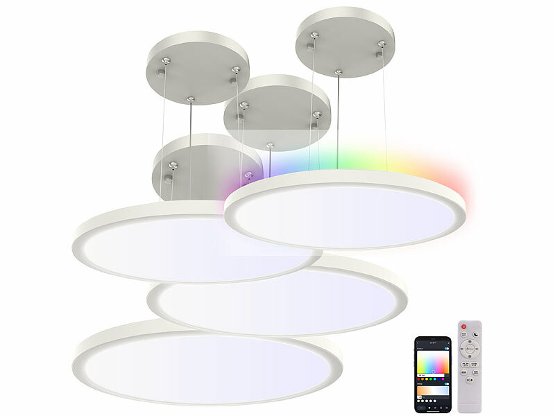 4 LED-Deckenlampen SPL-240.app jeweils inklusive Fernbedienung, Hängehalterung, Montagematerial und deutscher Anleitung