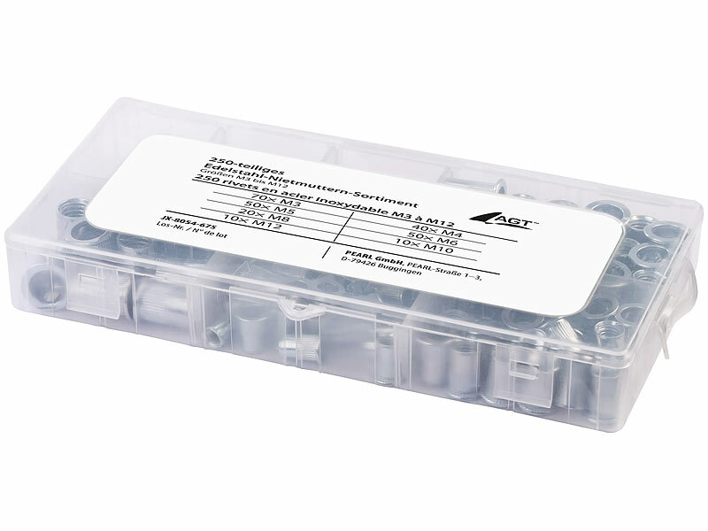 AGT Blindniet Mutter: 250-teiliges Edelstahl-Nietmuttern-Sortiment, Größen M3 bis M12