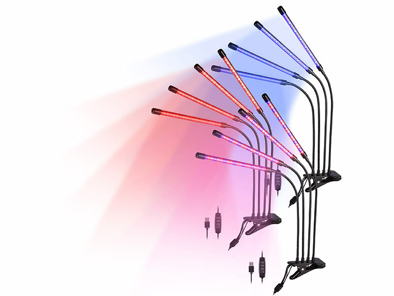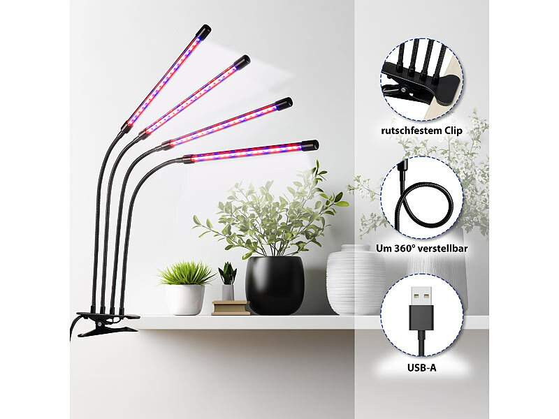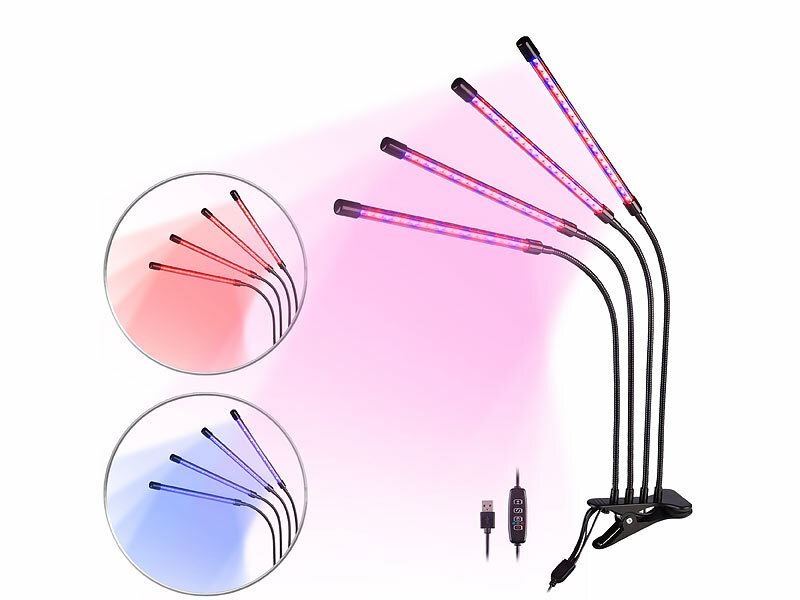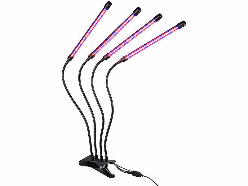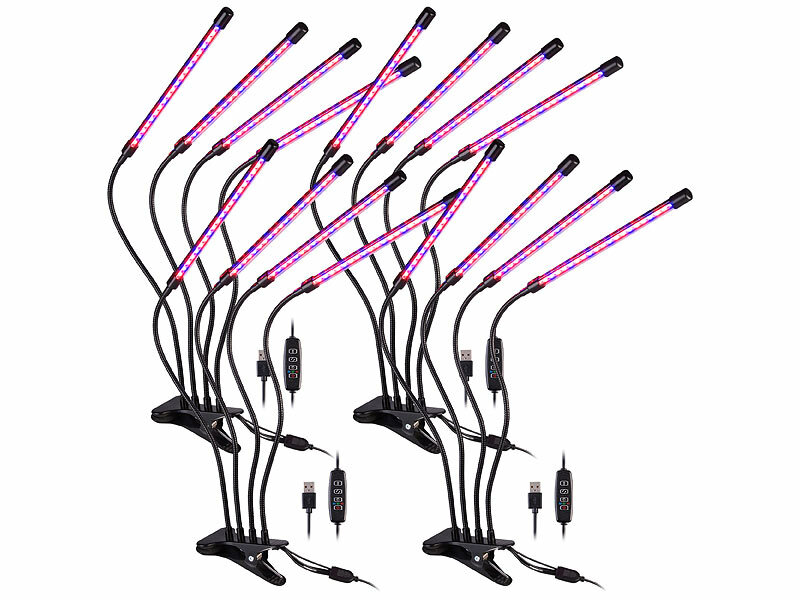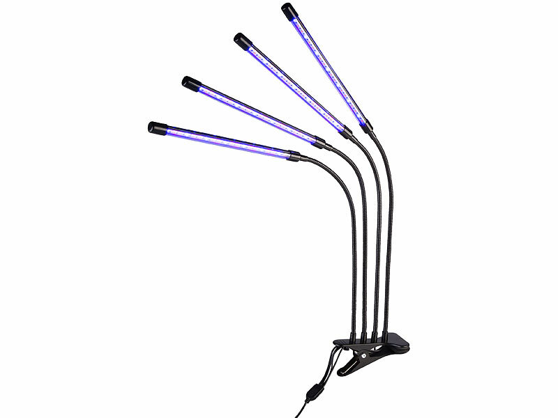 Lunartec dimmbare Pflanzenlampen: 4er-Set Vollspektrum-LED-Pflanzenlampe m. 4 beweglichen Schwanenhälsen