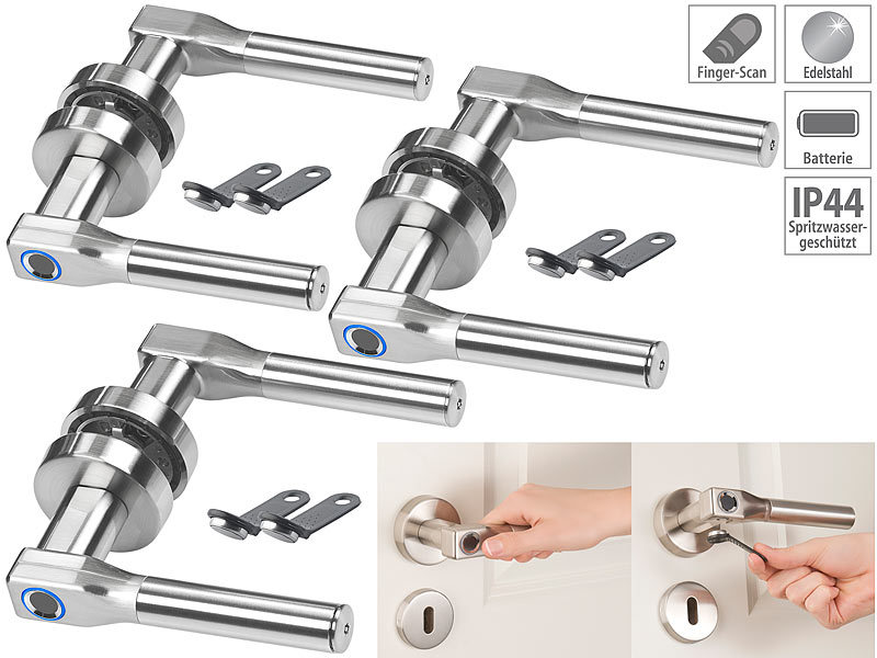 Halten Sie Ihre Tür unter Verschluss - zu Hause, im Büro oder in der Arztpraxis: Der moderne Edelstahl-Türbeschlag mit Fingerabdruck-Scanner verwehrt unbefugten Personen den Zutritt. Und macht dabei eine gute Figur!