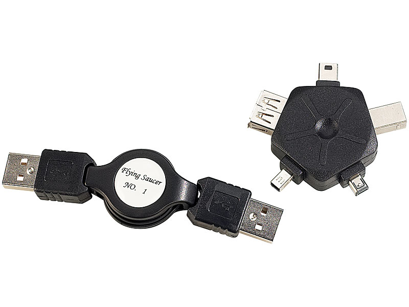 Kaum ein Standard bietet so große Steckervielfalt wie USB. Damit Sie nicht immer alle Kabel mitschleppen müssen, gibt es diese praktischen Mini-Adapter mit selbstaufrollender 80 cm Kabeltrommel.