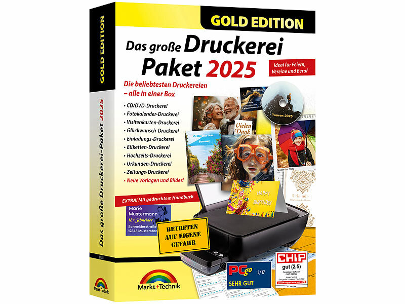Alle Druckereien in einer Box: Mit dem großen Druckerei-Paket 2025 gestalten Sie persönliche Karten, Etiketten, Visitenkarten und vieles mehr - ganz ohne Vorkenntnisse. Wählen Sie aus über 6 Millionen Vorlagen, passen Sie Texte an und fügen Sie eigene Bilder ein. Ob Einladungen, Fotokalender, CD-/DVD-Labels oder Glückwunschkarten: Mit wenigen Klicks erstellen Sie beeindruckende Druckwerke für jeden Anlass.