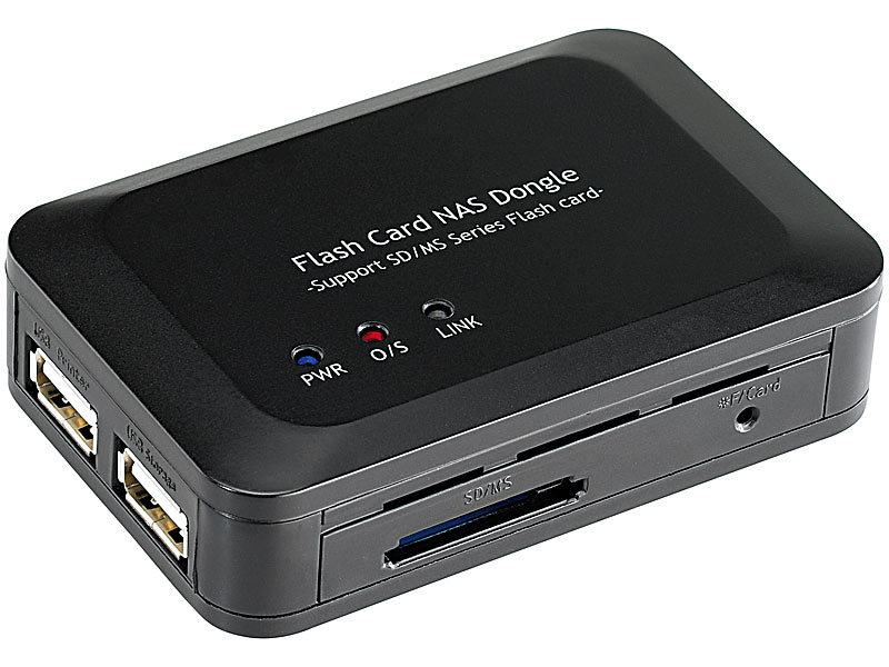 Winziger 4in1-NAS-Server für USB-Speicher, USB-Drucker, Speicherkarten und Media-Streaming und BitTorrent-Downloads