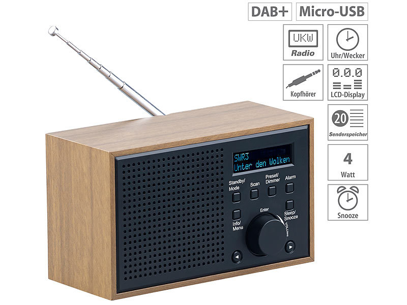 VR-Radio Radio Holz DAB: Digitales DAB+/FM-Radio mit Wecker, LCD-Display (Versandrückläufer)