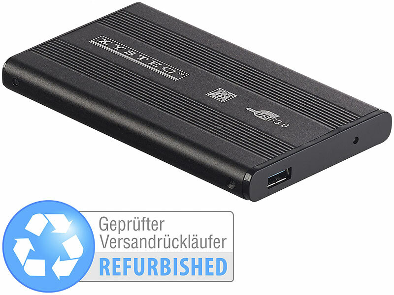 Aluminiumgehäuse für 2,5"-SATA-Festplatten bis 2 TB (SATA I/II) und max. 9,5 mm Einbauhöhe
