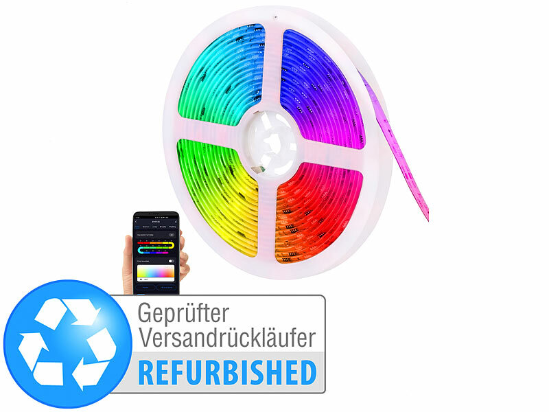 Vielfältige Lichteffekte: Der eingebaute RGB-IC-Chip ermöglicht das gleichzeitige Zeigen mehrerer Farben auf einem LED-Streifen! Die Farben des Segments steuern Sie individuell. Mit 500 Lumen ist der LED-Streifen außerdem besonders hell.