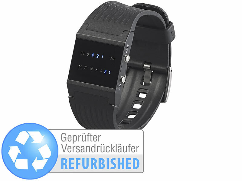 Binär-Armbanduhr inklusive Knopfzelle (CR2032) und deutscher Anleitung