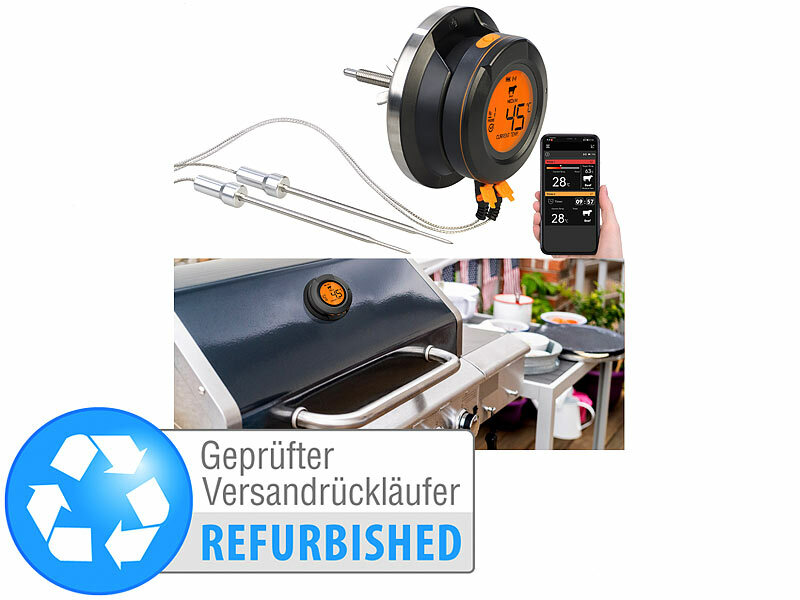 Kostenlose App für beste Grill-Ergebnisse: Wählen Sie aus 9 Arten von Grillgut aus. Stellen Sie den gewünschten Gargrade in 5 Schritten von Rare bis Well Done ein. Und sogar zum Räuchern haben Sie die Auswahl aus 3 Räucherstufen. Behalten Sie Ihr Grillgut stets im Blick. Und für beste Ergebnisse werden Sie alarmiert, sobald die Zieltemperatur erreicht ist.