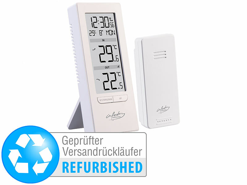 Temperatur-Messbereich: innen -9,9 bis +50 °C, außen -40 bis +70 °C