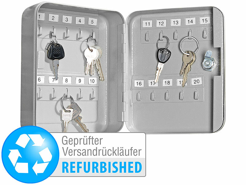 Verwahren Sie wichtige Schlüssel extrasicher: Ihr Stahl-Schlüsselschrank ist der robuste Tresor für 20 Schlüssel rund um Haus und Hof, Betrieb, Werkstatt und Gelände.