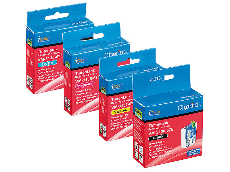 Cliprint ColorPack für EPSON (ersetzt T03214010 + T042240-440)Revolutionär sparsam: je 1x Cliprint pro Farbe im SparpaketProduktbeschreibung: