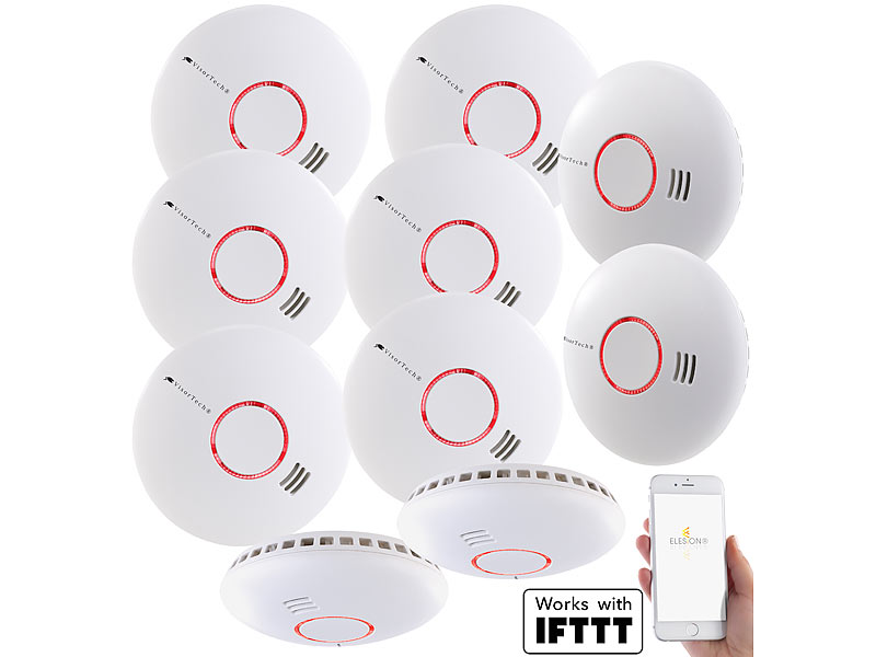 10 Hitze- und Rauchwarnmelder RWM-200.app je inklusive 2 Batterien, Montagezubehör und deutscher Anleitung - Funk-Hitzemelder - Außerdem relevant oder passend zu: Smart Home
