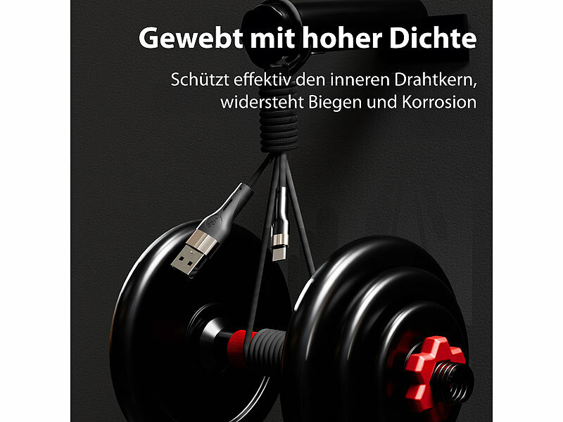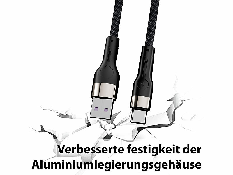 Material: Aluminium-Stecker, robustes Kabel mit Textilummantelung