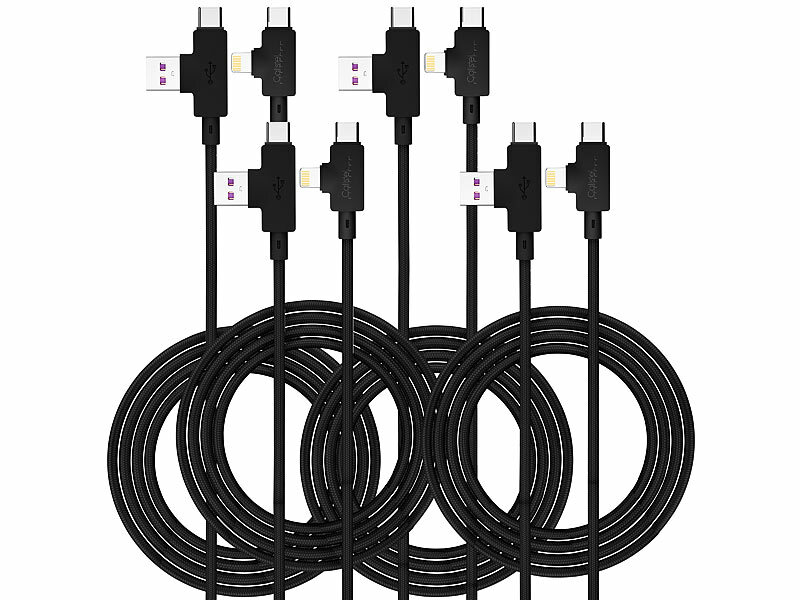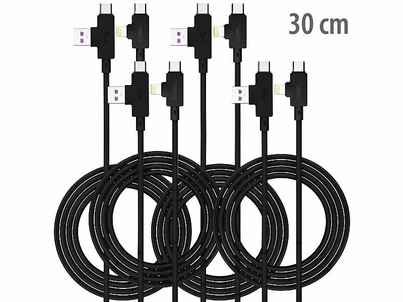 Callstel UUSB Datenkabel Typ C: 4er-Set 4in1-Lade- & Datenkabel USB-A/C zu USB-C/8-PIN, 30 cm, 3 A