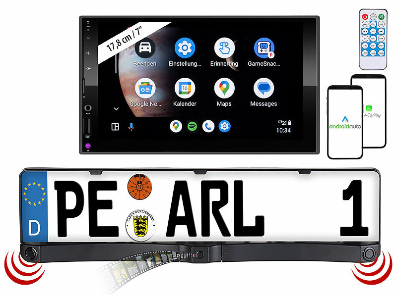 Nummernschuld-Halterung mit Kamera und Sensoren inklusive akustischem Abstandswarner, Strom-Anschlusskabel, Videokabel, Montagematerial und deutscher Anleitung - Touchscreen-Autoradio - Außerdem relevant oder passend zu: Kabel, Antenne, Verstärker, Lautsprecher, Kfz Freisprechanlagen, Freisprecheinrichtung