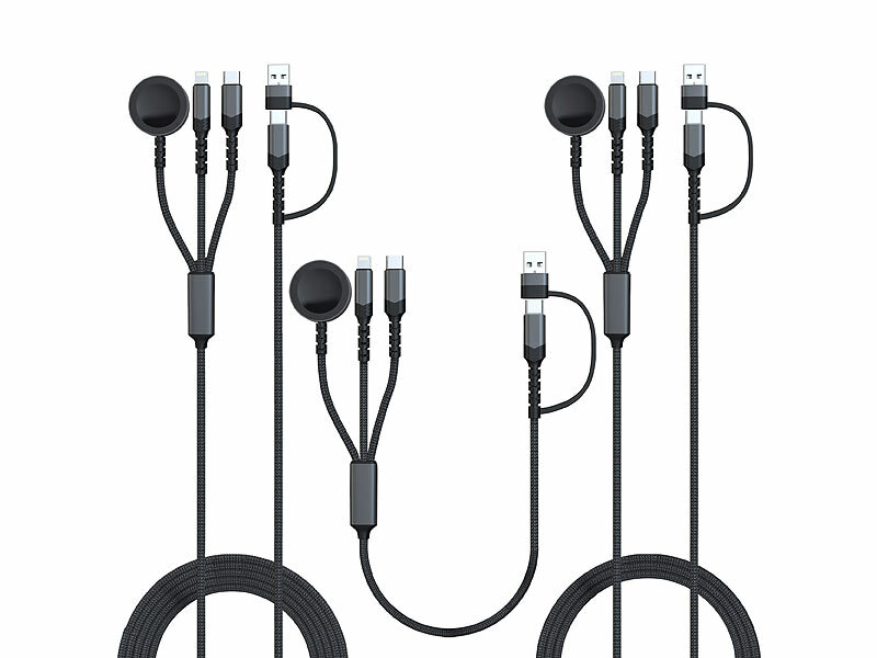 Callstel USB-Lade-Kabel Universal: 3er-Set 6in1-Octopus-Ladekabel Apple Watch/iPhone, 35cm, 100cm, 200cm