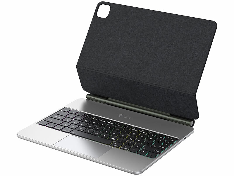 Mehr als nur Schutz für Ihr iPad: Dank des integrierten Magnets haftet Ihr iPad sicher in der Tastaturhülle. Aufgeklappt schwebt Ihr iPad frei über der Tastatur, welche im QWERTZ-Layout mit 64 Tasten und integriertem Trackpad Ihr iPad zum effizienten Arbeitsgerät macht. Wischen, zoomen oder scrollen: Dank des präzisen Trackpads navigieren Sie flott und steigern Ihre Produktivität im Handumdrehen.