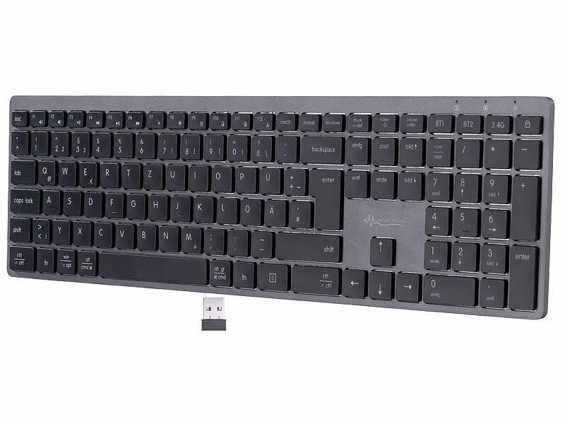 Tastatur inklusive USB-Funk-Empfänger, USB-Ladekabel (USB-C auf USB-A) und deutscher Anleitung - drahtlose Tastatur - Außerdem relevant oder passend zu: Schere, iPhone, Laptop Tisch