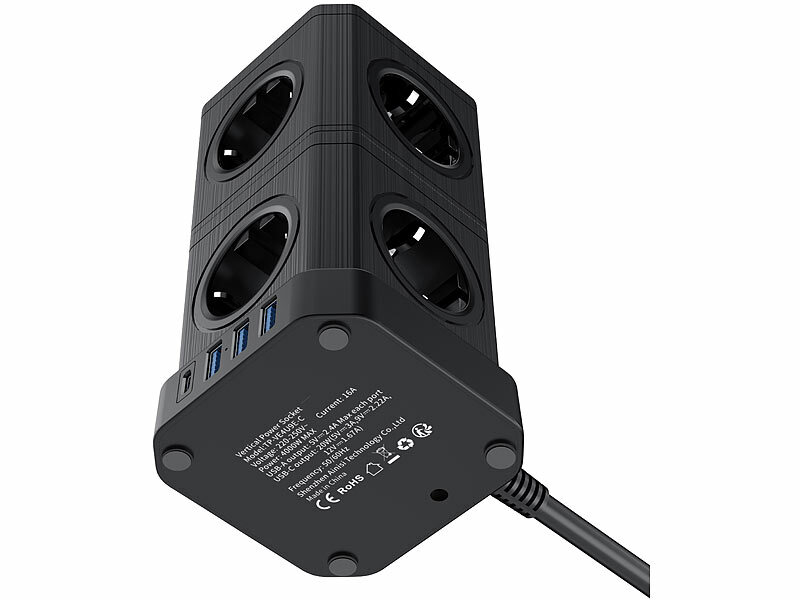 revolt Steckdosenleiste mit USB-C PD, vertikale Steckdosenleiste mit USB