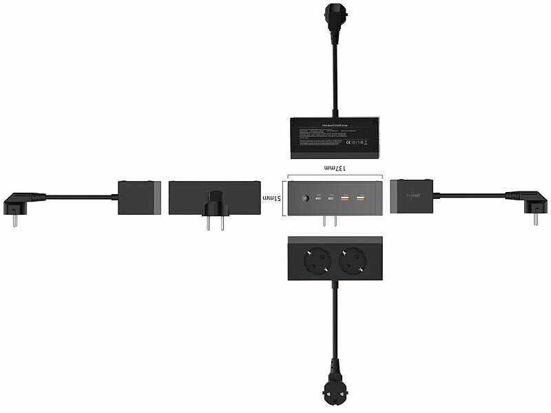 Steckdosenleiste und USB-Schnellladegerät inklusive deutscher Anleitung
