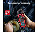 Strommesszange inklusive 2 Messleitungen mit Prüfspitzen, 1 Temperatur-Sonde, Schuttasche, 2 Batterien Typ AAA / Micro und deutscher Anleitung