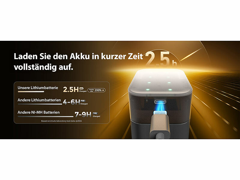Ladebox: lädt bis zu 8 Akkus gleichzeitig per USB-C (Netzteil bitte dazu bestellen)