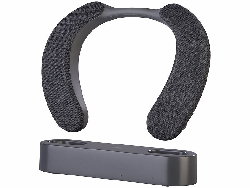 Funk-TV-Hörverstärker und Nackenlautsprecher inklusive Basisstation, Netzteil und deutscher Anleitung - Nackenlautsprecher mit Akku - Außerdem relevant oder passend zu: PC, DVD, Senioren, Kopfhörer, Funkkopfhörer