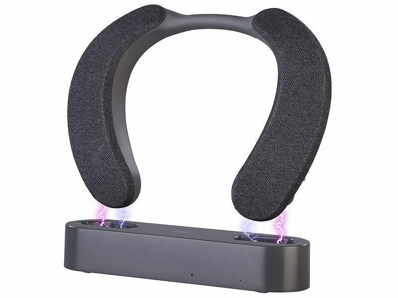 Praktische Dockingstation: lädt und verwahrt den Nackenlautsprecher
