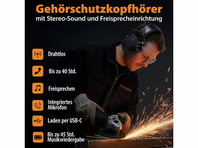 Leistungsstarker Gehörschutz mit Musikfunktion: Diese Akku-Gehörschutzkopfhörer kombinieren effektiven Lärmschutz mit kabellosem Hörgenuss. Dank Bluetooth 5.1 verbinden Sie die Kopfhörer einfach mit Ihrem Smartphone oder Tablet-PC - für Musik, Podcasts oder Anrufe in Arbeitsumgebungen mit hohem Geräuschpegel. So arbeiten Sie konzentriert und genießen zugleich Ihre Lieblingsinhalte - ganz ohne störende Kabel.